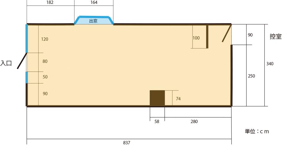 ■移動可能な大小正方形、長方形の台を15個お使いいただけます。 控室、物置をご利用いただけます。